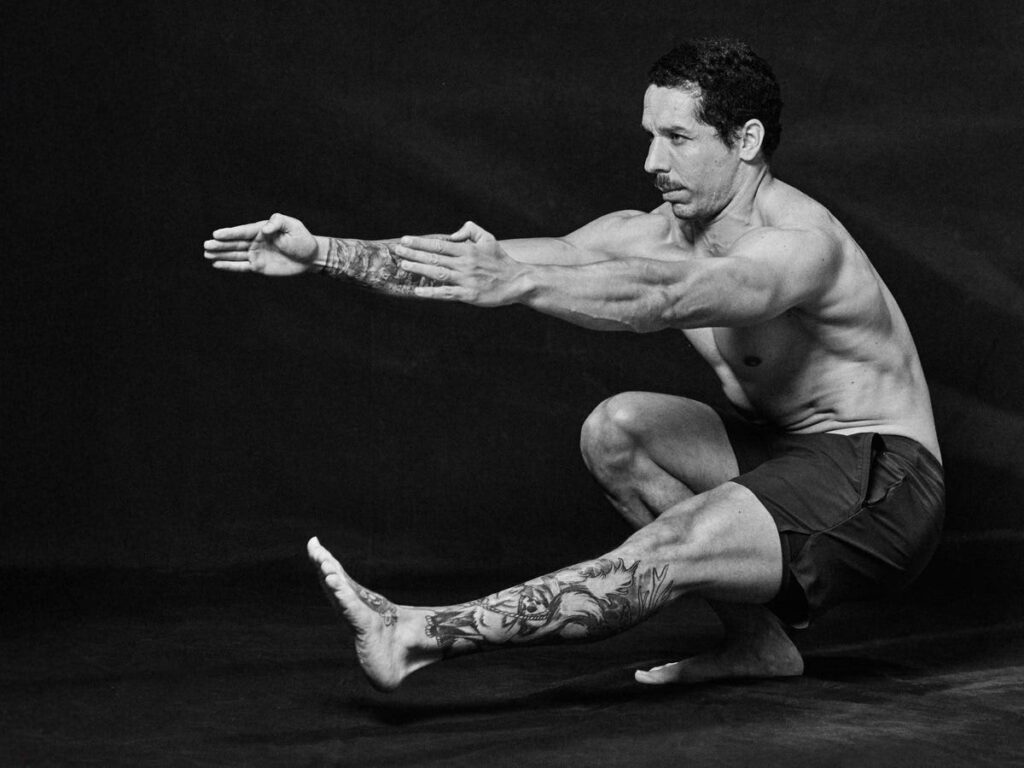 - 3. Press Z-Press con Mancuernas: Sentado en el suelo con las piernas estiradas y sin apoyo lumbar, el Z-Press aísla el trabajo del hombro de forma extrema. Esta posición elimina cualquier posibilidad de compensación con la espalda baja, exigiendo una movilidad superior de la cadera y una fuerza excepcional del core para mantener la postura erguida y estable. Es un ejercicio que revela cualquier debilidad en la cadena postural.