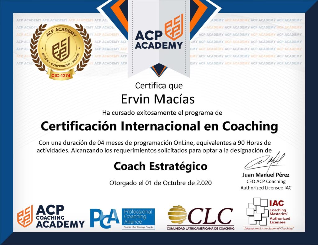 - Acceso a Redes: Le permite unirse a comunidades globales de coaches, facilitando el networking, el aprendizaje y la colaboración.