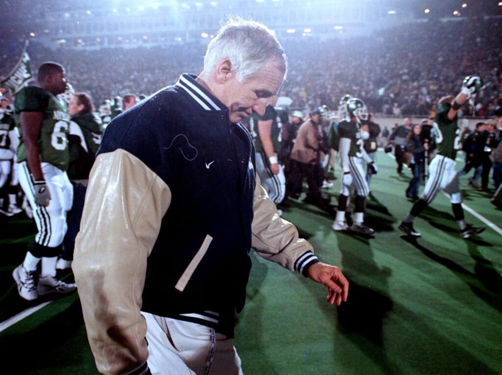 Tras su retiro en 1999, Sandusky recibió un paquete de compensación inusual y una designación especial de rango “emérito”, que le otorgaba privilegios como acceso a las instalaciones recreativas de la universidad. Recibió un pago único de 168.000 dólares. Su último partido como entrenador en Penn State fue una victoria notable de 24-0 contra Texas A&M en el Alamo Bowl de 1999, la única victoria por blanqueada en un bowl para Penn State bajo Paterno.