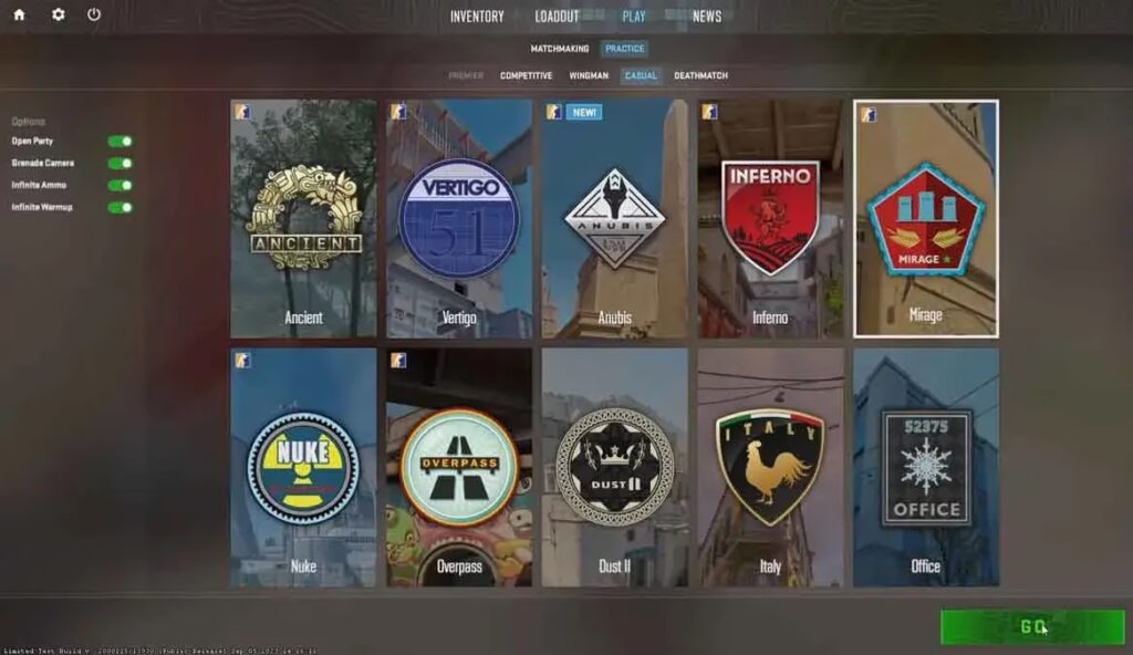 Para crear un servidor de práctica, simplemente abre el juego, selecciona 'Jugar' > 'Partidas de Práctica' > 'Con Bots'. Una vez cargado el mapa, abre la consola y ejecuta todos los comandos que te interesen. Una secuencia común para iniciar una sesión de práctica sería: