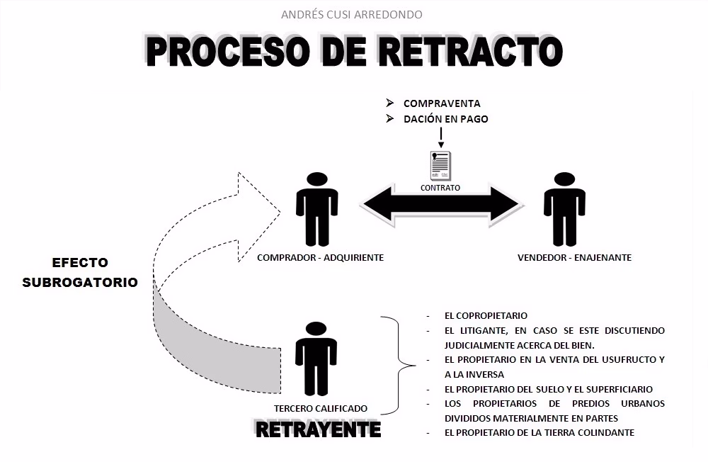 - Retracto Legal (Art. 1521 a 1525 CC): Es el derecho reconocido directamente por la ley en determinados supuestos específicos, otorgando a ciertas personas la facultad de subrogarse en la posición del comprador.