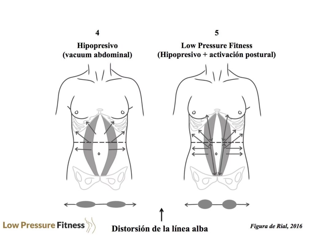 El estudio de Lee & Hodges (2016) fue pionero al observar que, si bien algunos abdominales tradicionales pueden acercar los rectos, también pueden causar una mayor distorsión (deformación) de la línea alba, lo que implicaría una tensión fascial perjudicial a largo plazo. Por el contrario, la pre-activación del transverso del abdomen, característica de los ejercicios hipopresivos, puede incluso aumentar ligeramente la distancia entre rectos durante el movimiento, pero reduce significativamente la distorsión de la línea alba, lo que sugiere un efecto más beneficioso sobre la calidad del tejido conectivo.