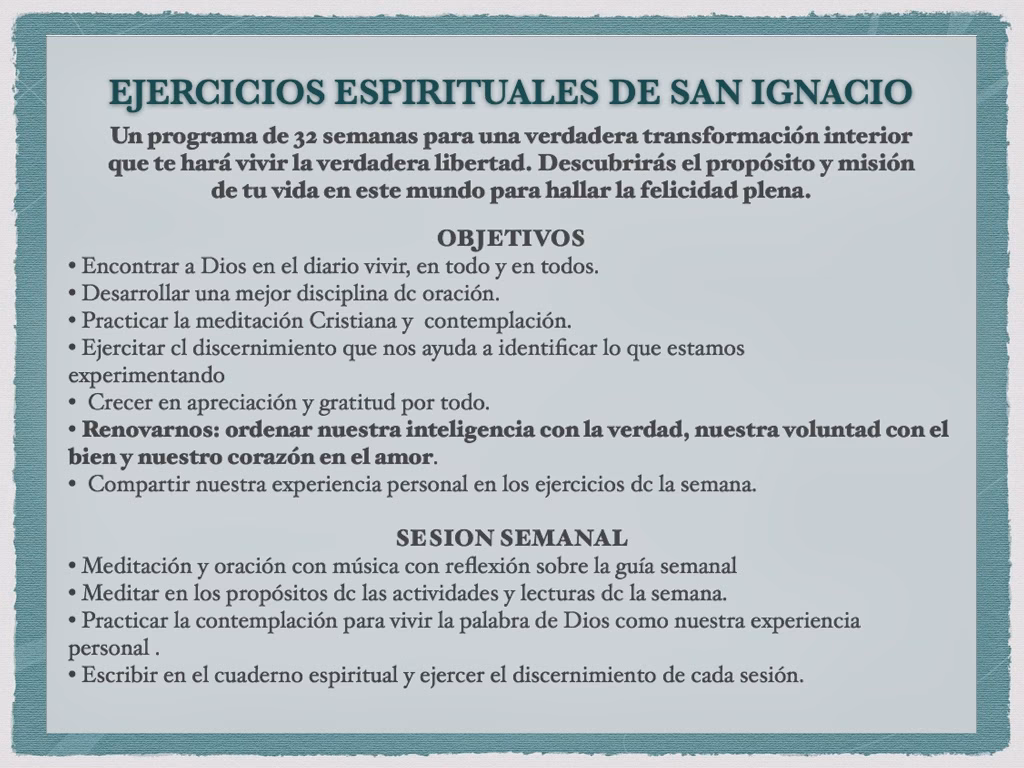 | Participación Comunitaria | Asistir a misa, reuniones de grupo, o actividades de la iglesia. | Variable (semanal/mensual) |
