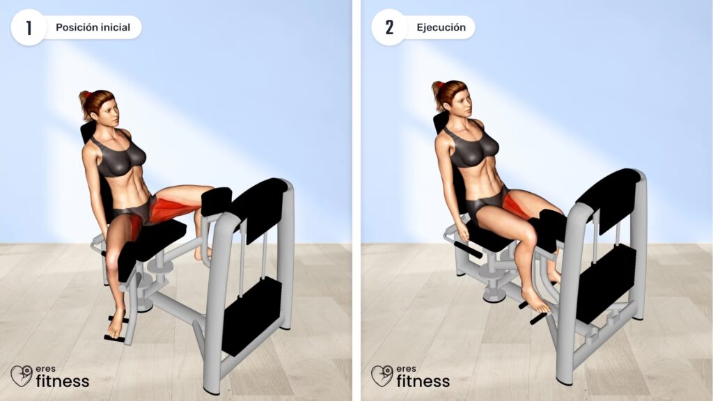 - Retorno a la Posición Inicial (Fase Excéntrica): Controla el regreso de las piernas a la posición inicial. Permite que el peso te guíe suavemente, resistiendo el movimiento para que la fase excéntrica sea tan controlada como la concéntrica. No dejes que las piernas se cierren de golpe; el control durante esta fase es crucial para el desarrollo muscular y la prevención de lesiones. Detente justo antes de que los pesos se toquen o chocan, manteniendo la tensión en los músculos.