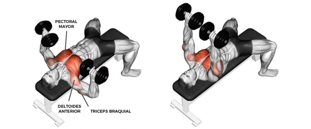 • Aperturas con mancuernas (flyes): Excelentes para la porción externa del pectoral y la amplitud.