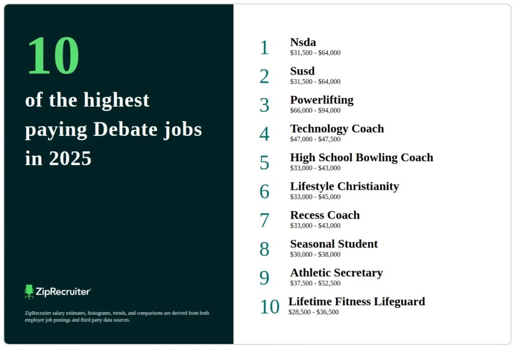 - No necesariamente. Muchas oportunidades para debatientes y entrenadores, como se mencionó, son a tiempo parcial. Esto permite a los individuos balancear sus actividades de debate con estudios, otros trabajos o compromisos personales. Sin embargo, incluso a tiempo parcial, el rol exige un alto nivel de dedicación y profesionalismo.