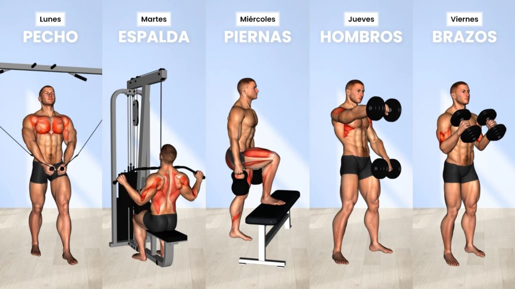 Una de las estructuras más comunes y efectivas, especialmente para aquellos que se inician o tienen un nivel intermedio, es la división de entrenamiento de cinco días. Esta permite trabajar cada grupo muscular con alta intensidad y asegurar una recuperación adecuada.