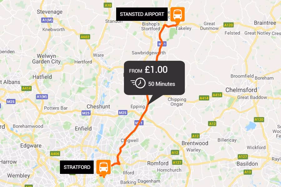 Los servicios operan las 24 horas del día, llegando y saliendo directamente desde la puerta de la terminal. Entre los muchos destinos, National Express ofrece un servicio directo sin paradas a Stratford cada 20 minutos a lo largo del día, con un tiempo de viaje de aproximadamente 50 minutos. Mientras tanto, los servicios a Londres Victoria operan cada 25 minutos, con un tiempo de viaje de aproximadamente una hora y media. A continuación, se muestra una tabla con algunas de las rutas más populares y sus tiempos de viaje:
