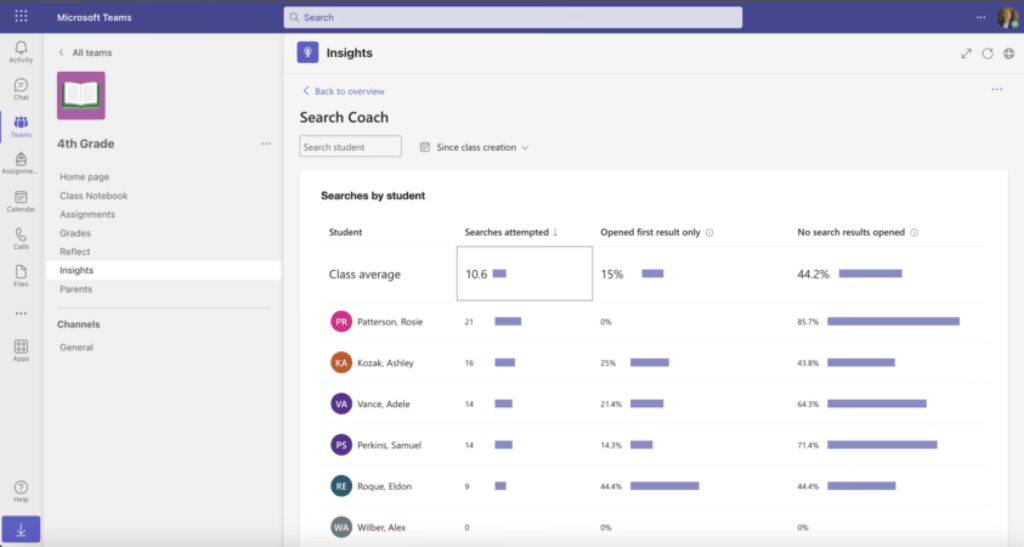 Uno de los mayores desafíos para los educadores es comprender cómo los estudiantes interactúan con la información en línea y por qué creen ciertas fuentes. Search Coach aborda esta frustración con su función de 'Insights de Clase'. Los educadores pueden visualizar la actividad y el comportamiento de búsqueda de sus estudiantes, incluyendo: