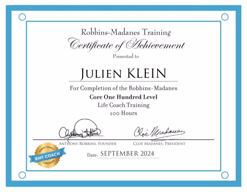Al finalizar el programa, estarás equipado con el conocimiento y la experiencia práctica para convertirte en un coach certificado por Tony Robbins, listo para generar un impacto significativo en la vida de tus clientes y construir una carrera sólida en el mundo del coaching.