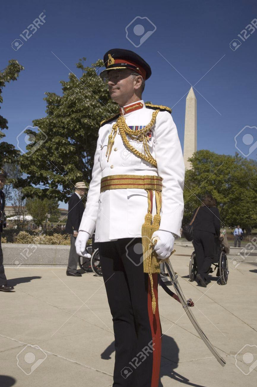 | Ejército | No se menciona explícitamente el uso de espadas con el uniforme de gala estándar del Ejército. | El enfoque está en las insignias y la formalidad del vestuario. |