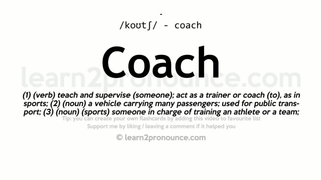 Un 'coach' es una persona que proporciona orientación, instrucción y entrenamiento para ayudar a las personas a mejorar sus habilidades y alcanzar sus metas, ya sea en deportes, ámbito académico u otros campos. Un 'coach' también puede ser una persona que entrena y apoya a otros en un campo o actividad específica, utilizando diferentes estrategias y métodos de entrenamiento. El término 'coach' también puede referirse a un vehículo como un autobús o tren utilizado para el transporte y el viaje, ayudando a grupos a moverse de un lugar a otro.