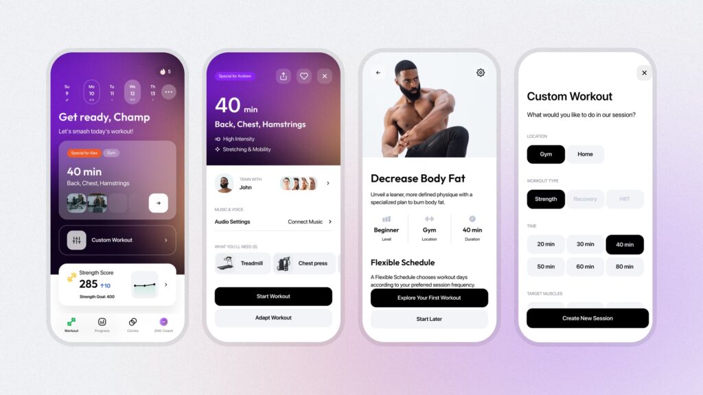 Zing Coach está diseñada pensando en la participación y accesibilidad del usuario, ofreciendo una interfaz intuitiva que simplifica el viaje de fitness. Al registrarse, los usuarios completan una evaluación exhaustiva que recopila información sobre sus objetivos de fitness, niveles de actividad actuales y preferencias personales. Estos datos son la base para que la IA genere un plan de entrenamiento personalizado que es tanto efectivo como disfrutable.